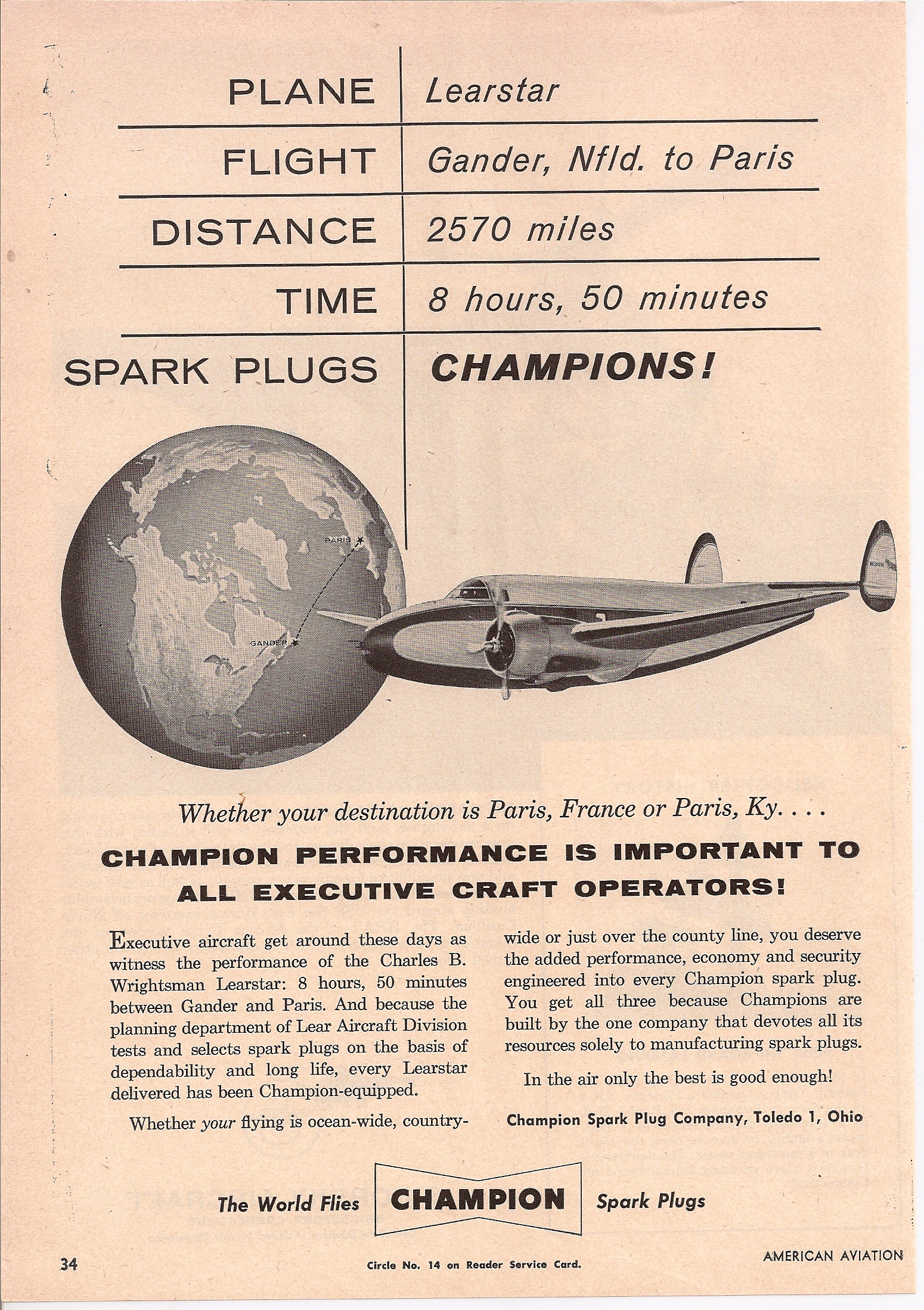 the aviation world.![]() It was normal in those days, and no longer very risky, to fly the Atlantic in a 2-engine prop aircraft - 2750 miles from Gander to Paris in a bit under 9 hours. In late November 1942, it was quite a different story when similarly looking, but unpressurized and unheated Hudsons eaked their way across the Atlantic without any navigations aids to talk about - in only an hour or so more. Probably the biggest difference was the power of the engines. The Hudson Mark ll used 1,100 hp Wright Cyclone 9-cylinder radials while the Learstart Mk 1 was powered by R-1820-76A engines, at 1425 hp. Given the difference in power, equipment and conditions, the Hudson pilots had to be pretty hot to get close to the same performance. They both however used Champion plugs. ![]() After some searching, I may have even come up with a real photo of the same aircraft ! ![]() It is interesting to note that the Lear name has become Candianized and is now used by Bombardier. As well, there is quite a resemblance to the Lockheed Hudsons which did the first Ferry Command flights from Gander to Europe in 1940. |