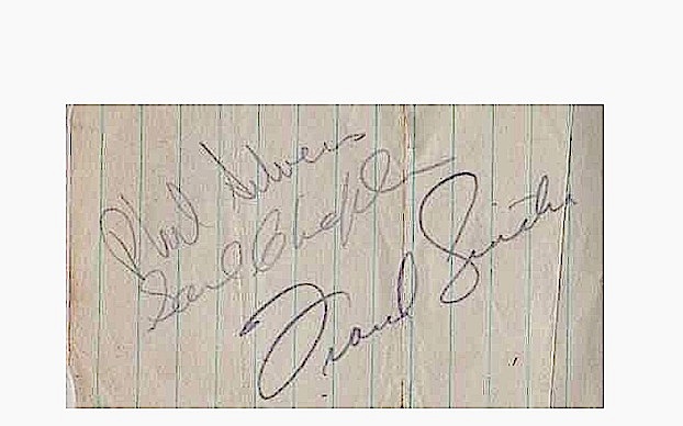 When I took part in a radio drama, I was taken to a small room at the station on the RCAF base. We sat at a table; one of the men read the story into the microphone which sat on the table. Another man sat ready to add sound effects, such as wood hitting the table to sound like a door slamming. I was told to scream ‘on cue’ which I did. Later I learned that it was so loud it stopped conversation in the bar while all eyes turned to the radio. I was twice in the U.S. reception hall. Once with an English dance instructor who was an officer in the RAF and wanted a partner for New Years’ Eve. It was a delightful evening; we danced the whole night – latin dances, waltzes, foxtrots, jive - and he was pleased that I could follow his lead. The 2nd visit was with an RCAF airman. He had worked as a cartoon artist in Hollywood but joined the RCAF to help with the war effort in 1939. He knew of a visit by Frank Sinatra, Phil Silvers and Saul Chaplin, who were on tour. He introduced me to them and they gave me an autograph.