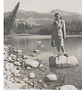Shifts were 8:00 to 12:00, 18:00 to 23:59 (we were not allowed to use 00:00) – next day 12:00 to 18:00, 00:01 to 8:00, after which we had 2 days free till we went on 8-12 shift. On our day off, we’d plan some activity together with whomever was off shift. After a midnight shift, some of us would stay up if a group had plans to go skiing. Skiing in the 1940s was different from the 2000s. In Gander there were no sky-high mountains so we hiked, trudging through the snow not knowing where the path led or where potholes lay under the pristine landscape. Some of our group knew how to ski. They decided on the hill we would climb to ski down. Yes, I said ‘climb’. Today, you have ‘lifts’ which carry you uphill. Then we put on the skiis (which were 6 feet long), were told to turn sideways and dig into the hill as we climbed, which I later learned is a cross-country skiing technique. We were warned not to climb near the area where we would be skiing down because, of course, the snow had to be smooth. I was exhausted just getting to the top. Once there, the prospect of careening down intimidated me. We, who had never seen a ski before let alone stood on one – or two, were mystified by the prospect of descending that ‘hill’ they called it. How do we start? How, then, do we stop? Turn, you say? Which way? How do we turn? If I ever get down, I’m not gong back up. Perhaps I should go back down sideways, on the path we came up! No, I shall survive! I must try! I stopped - by sliding on the seat of my pants – sorry to the other skiers for flattening their smooth landing. Oh well, there was lots of snow on the hill left for them. On the way home from one of these ski excursions, the group of 7 of us stopped dead in our tracks. We were faced by a moose. One of the Newfoundlanders with us whispered, “Don’t move and don’t stare into its eyes.” It stood staring at us; wiggled an ear as snowflakes tickled the hairs; shook its huge head to dislodge some of the fallen snow; but when it bent its head to the ground, we all drew in a collective breath thinking it was preparing to charge. We again breathed collectively, as he/she merely licked the new snow then turned and walked into the forest. No problem for those long legs to manoeuvre through the deep drifts. We still didn’t move until we saw the tail disappear behind a tree. The boys, especially the Newfoundlanders, sometimes left the base on days off. They returned with some fantastic stories. On a train trip to Cornerbrook, they said that all the passengers were ordered off the train in the middle of nowhere. The male passengers were instructed to push the train up the hill – known as Topsail Hill. We listened – but we were in doubts as to belief. I have since heard some pretty tall stories about the Newfie Bullet – the cross-country train. I was constantly being teased; and I could return a fair repartee. At breakfast one morning coming off shift, one of the boys across the long table said to me, “Gloria, there are some legs floating in your milk. Where do you think the rest of the cockroach is?” I knew I daren’t show fright. I learned from being chased around Dad’s garden by my brother holding wriggling worms that fear brings laughter. I answered, “Oh, I probably ate it!” That shut him up. Since returning to Ontario, I have heard from some of my colleagues from Gander, but most have gone their separate ways. Before I left Newfoundland, I was invited by Dick Stamp’s parents to visit his home in St John’s and he and Bob Parsons took me to Signal Hill. I was amazed at the slope of the streets in St John’s and the agility of the elderly people climbing them. Dick was a teletype operator in Gander, Bob was one of the wireless ops. I was invited by one of the girls, Hazel Bjornstad, in our dorm’ to visit her home in Evansburg, Alberta. I took the cross-country train with a berth that folded into a seat during the day. This was exciting for me to travel through the forests of northern Ontario, into new provinces – to cross the Red River, see the tall storage silos in the prairies, then arrive in Edmonton. Mr Bjornstad met me with his daughter, Hazel. He drove a model T Ford, said it was the only car with high enough chassis to clear the rough roads still around the province. He drove around Edmonton before going to his farm. The ‘road’ to his home was full of ruts where his car and tractor wheels had sunk into the mud when it rained. He drove us to Jasper, a small town in 1945, for a day’s visit. What a spectacle to see the majesty of the mountains.