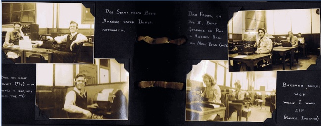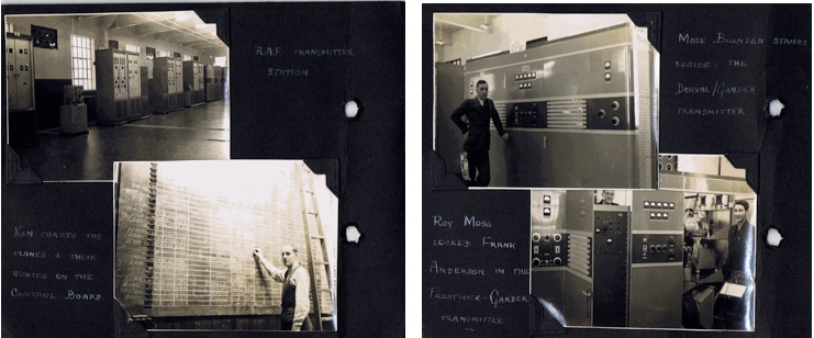 Top left RAF transmitter station Bottom left Ken charts the planes and their routes on the control boardTop right Mose Blunden stands beside the Dorval/Gander transmitter Bottom right Roy Moss locked Frank Anderson in the Prestwick-Gander transmitter