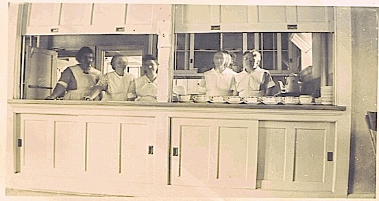 The other parts of the hangers were used for aircraft needing repair or just to keep them out of sight. There had been a warning that German submarines had been in the Gulf of St Lawrence and Newfoundland is between the Gulf and the Atlanic Ocean. We were led past the hangers to an H-shaped wooden building – called ‘A’ building – entered from the rear to climb to the 2nd floor where the female RAF Signal operators were housed. I had a room to myself with a window which overlooked the road to the pond and the setting sun. Thus began 2 years at Gander. On the airbase, there was an RAF sector (British), an RCAF sector (Canadian), and, in time, a USAF sector (U.S.A.). There was a bus travelled between bases so we could visit the little chapel or the local radio station at the RCAF base, or the Tuck Shop at the USAF base. The RAF base was the bare minimum – airfield, hangers, a cafeteria which doubled as a reception/dance hall; and 3 H-shaped housing buildings. Building ‘A’ housed R.A.F. officers in one wing of the H. In the other wing, the Sergeants, Corporals, non-coms were on the first floor, below us girls. Their entry door was at the front of the building. Ours was at the rear, followed by a staircase up. In the centre of the H with a defining wall between left and right wings, were the community showers and toilets. Building ‘B’ housed Newfoundlanders working for the base. Their families stayed there too. One of the men, Vince Myrick, was so good at reading Morse code that he could translate it at taped speed. Another family, Lush, from that building became my friends and their daughter, Eloise, was a bridesmaid when I married. Eloise (left in photo of 3) assisted our House Mother with her daily chores. Her dad worked in the cafeteria.