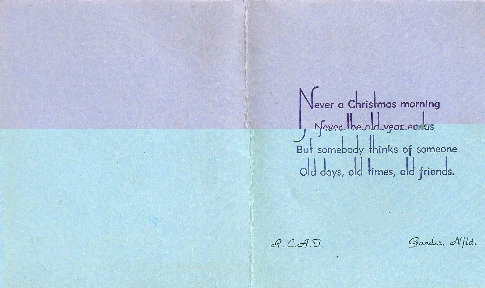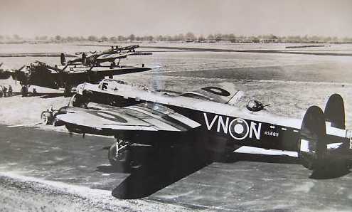i![]() I noticed that the Lancaster on the cover of the Christmas card had the identification number “VN-N”. In the Royal Air Force and Commonwealth countries, the first two letters identified the Squadron which flew the airplane while the last number identified the aircraft itself. I wanted to discover more about this airplane, hoping in particular to find out why it had been selected for the cover of a card representing Gander. The